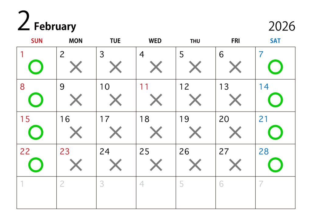 2月の店舗営業