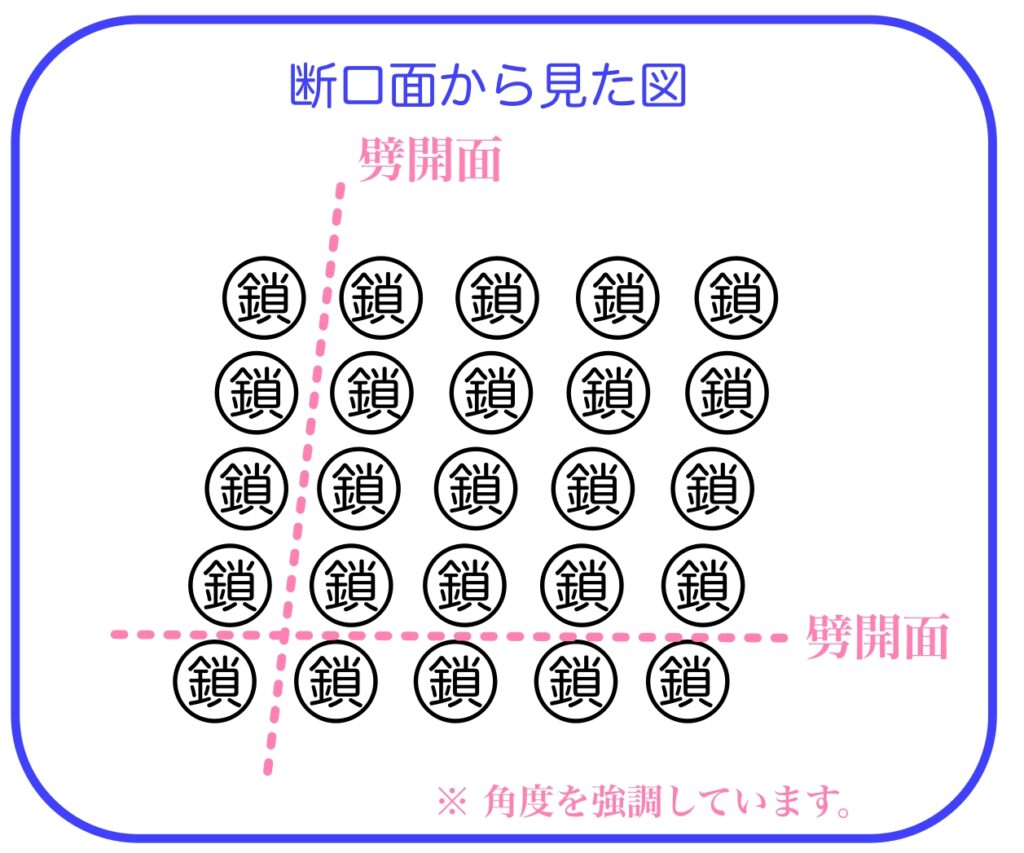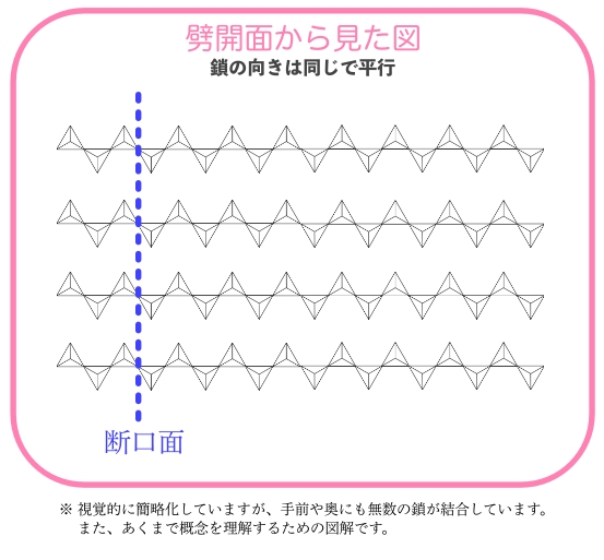 劈開面とは、この鎖の向きに沿って割れた面のことです。